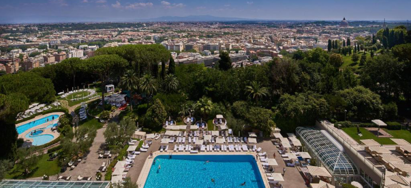 Роскошный ресторан La Pergola отмечен тремя звездами гида Michelin - никакой другой отель итальянской столицы не может похвастаться такой наградой. Другая его гордость - четыре плавательных бассейна, включая крытый и детский, и отличный spa-центр и многочисленные залы, как нельзя лучше подходящие для организации свадебного торжества или королевского банкета. Семьи с детьми несомненно порадуются наличию огромной парковой территории, эксклюзивного клуба для подрастающего поколения и специального меню.
