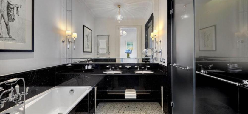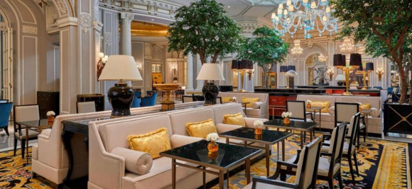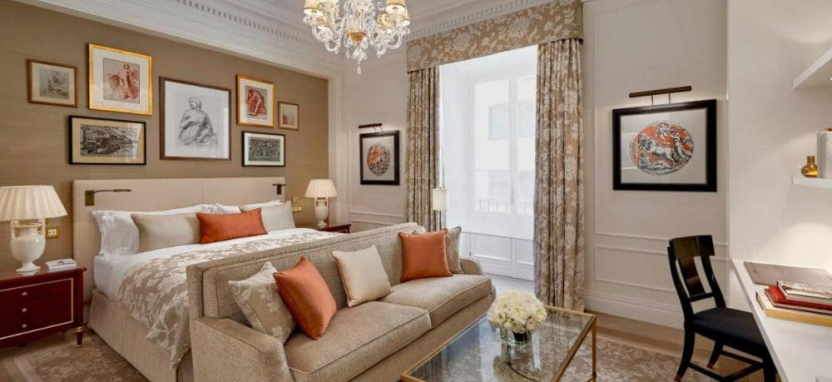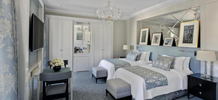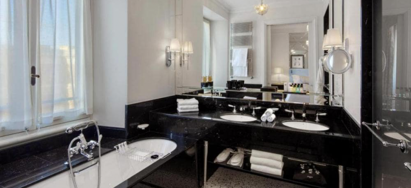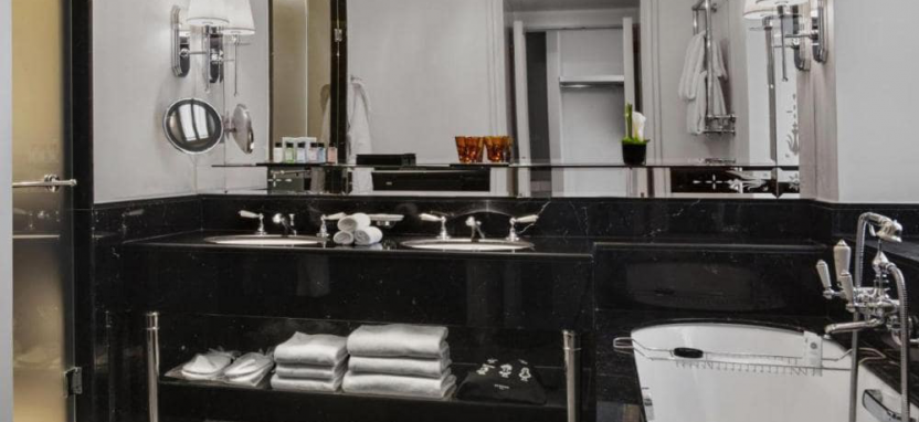 Royal Suite (300 кв. м) - роскошный королевский сюит с интерьером в стиле Луи XVI, с великолепными коврами и антикварной мебелью, оформленный в золотых, зеленых и красных тонах, роскошная гостиная с роялем, столовая с изысканными фресками на потолке и мраморным столом, просторная ванная комната, отделанная мрамором, с джакузи и душевой кабиной, гостевой туалет.
