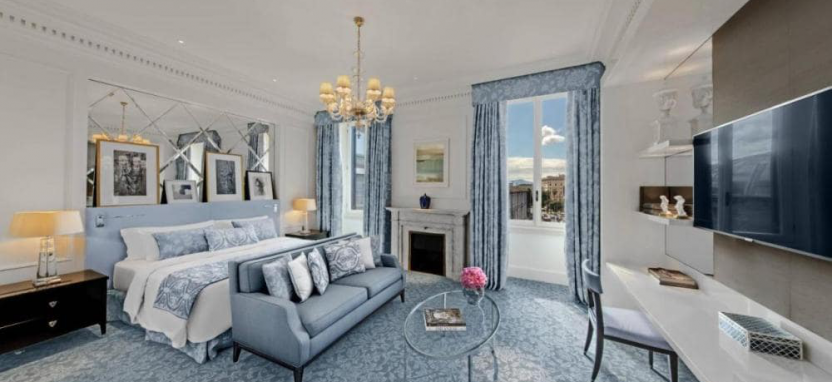 После реновации интерьеры St. Regis Rome сохранили свой элегантный стиль королевских покоев с использованием комфортных светлых тканей и оттенков. Для гостей доступны круглосуточный тренажерный зал, небольшой спа-центр и уютный ресторан итальянской кухни.