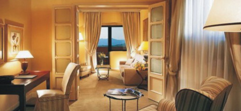 В каждом номере: ванная комната, фен, кондиционер, халат, сейф, мини-бар, спутниковое телевидение, Интернет-соединение, телефон, ежедневная свежая пресса. Все комнаты богато мебелированы в роскошном стиле эпохи Ренессанс, оснащены мраморными ванными комнатами и окутаны атмосферой старинной тосканской виллы. Номера имеют вид на холмы (Hill View) или на долину (Valley View). Во всех номерах с видом на долину, как правило, есть балкон, а часть номеров категории Deluxe предусматривают террасы.