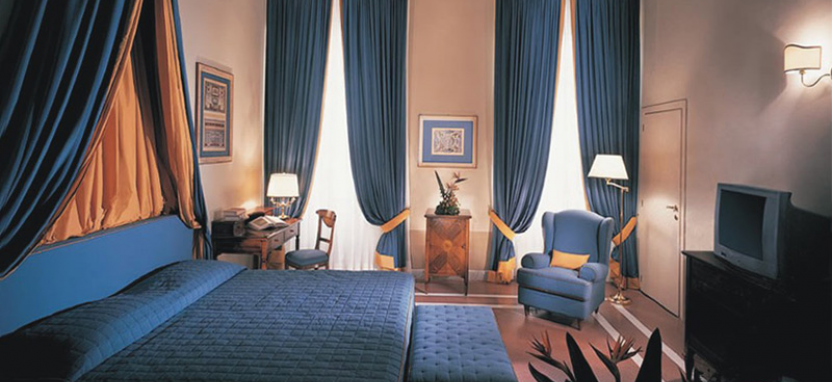 Suite (55-60 кв. м) – двухкомнатные номера с высокими потолками с оригинальными фресками 18 века и с панорамным видом. Номера состоят из спальни (кровать с балдахином), отдельной гостиной с раскладной софой и мраморной ванной комнаты (душ, ванна, двойная раковина). Возможно размещение до 4 человек в номере.
