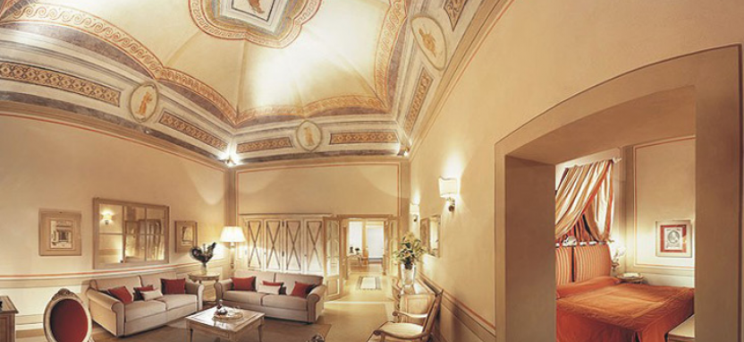 Отель занимает здание исторической виллы, поэтому в некоторых номерах (сьюты и джуниор сьюты) высота сводчатых потолков достигает 4 и более метров, сохранились уникальные фрески середины и конца 18 века, в комнатах также восстановлены полы, выложенные из ценных пород дерева, традиционной керамической плитки и мрамора. А из окон открывается панорамный вид на тосканские холмы.
