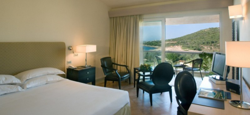 Deluxe Room (25 кв. м) - просторные номера, оформленные в современном стиле, вид на море, небольшая гостиная зона с креслами и столиком, спальня, просторная ванная комната с гидромассажной ванной и душевой кабиной, балкон.