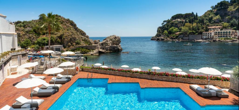 Mazzaro Sea Palace - роскошный отель, расположенный в очаровательной бухте Маццаро на острове Сицилия неподалеку от фуникулера, ведущего к историческому центру города Таормина. В номерах царит атмосфера классического стиля, сочетающаяся с современным комфортом, все комнаты имеют прекрасный вид на морской пейзаж. В изысканном ресторане отеля Mazzaro Sea Palace подают аутентичные блюда сицилийской кулинарии.