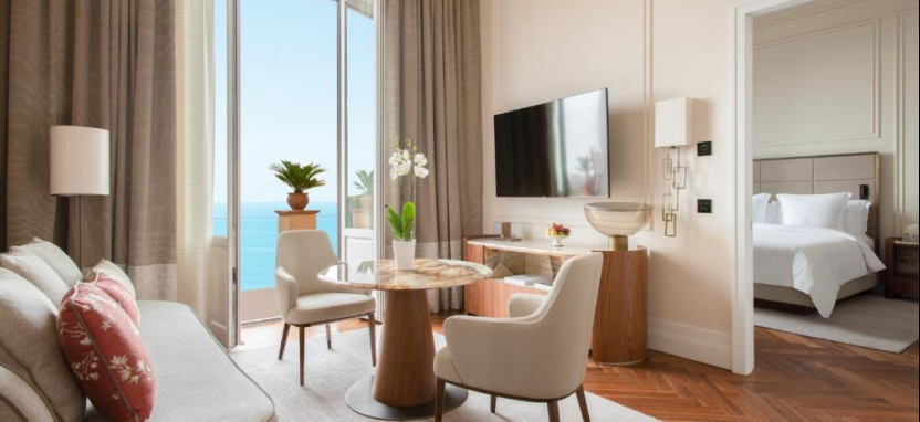 Junior Suite Sea View (36-51 кв. м) - в номере спальня с гостиной зоной (кровать king-size), ванная комната с ванной и (или) душевой кабиной. Вид на море.