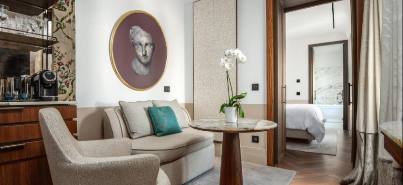 Princess Cecilie Suite (90 кв. м) - в номере фойе, гостиная с обеденной зоной, спальня с кроватью king-size, ванная комната с ванной и душевой кабиной. Расположены в угловой части здания. Панорамный вид на море, город и сад. Возможно объединение с номером категории Premium sea view room.
