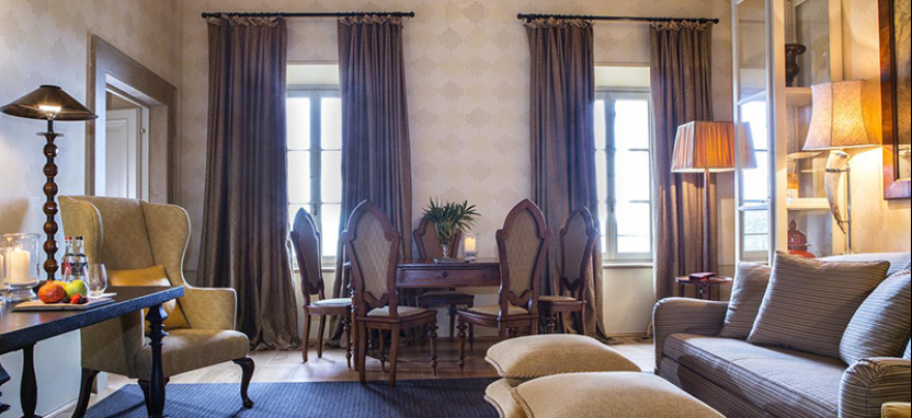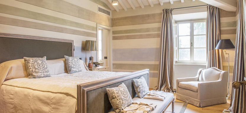 Villa Suite (183 кв. м): расположен в отдельном здании в центре Борго, имеет отдельный вход, выполнен в теплых тонах и декорирован изысканными произведениями искусства, состоит из двух спален с ванными комнатами, мини-кухни, просторной террасы и частного сада.