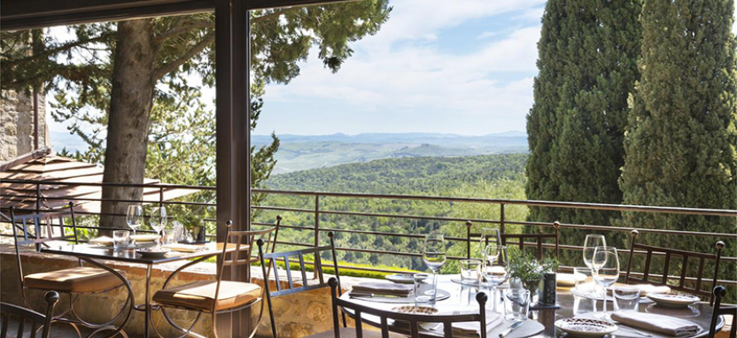 В ресторане Campo del Drago можно отведать изысканные блюда и вина Тосканы и полюбоваться захватывающим видом на холмы Монтальчино и живописную долину Валь д’Орча.