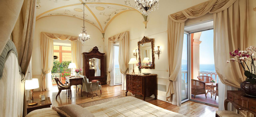 Superior Sea View Room (25-30 кв. м): номер с великолепным видом на Неаполитанский Залив обставлен антикварной мебелью конца ХIX века и искусно украшен трафаретной росписью с геометрическим и цветочным рисунком. Состоит из спальни с кроватью double или двумя кроватями twin, ванной комнаты, отделанной натуральным мрамором, и балкона. Максимальное размещение – 2 человека.