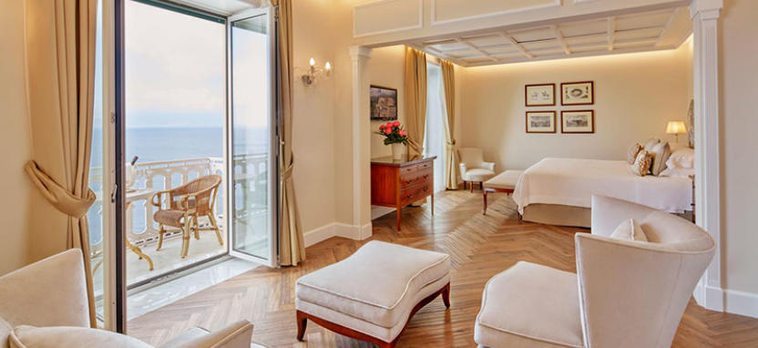 Junior Suite Superior Sea View (36-55 кв. м): изящно меблированный и декорированный в классическом итальянском стиле номер великолепным видом на Неаполитанский Залив состоит из спальни с кроватью double или двумя кроватями twin, гостиной зоны или отдельной гостиной (в ряде номеров данной категории), ванной комнаты, отделанной натуральным мрамором. Некоторые номера имеют террасу.