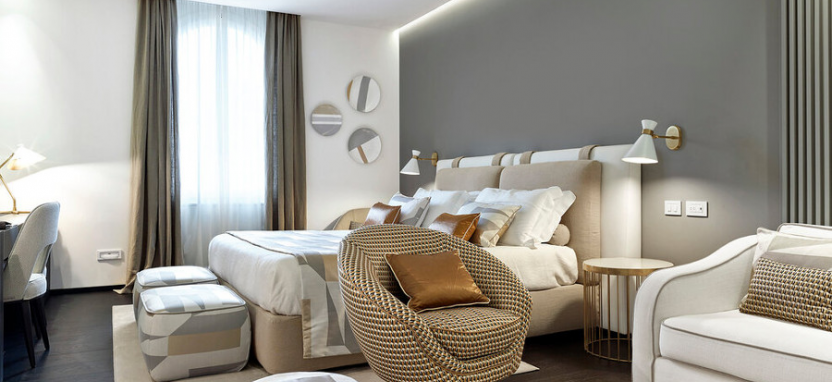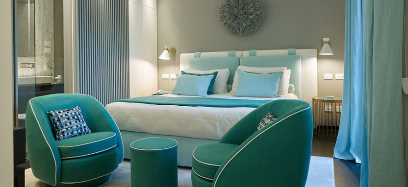 Junior Suite - элегантные сюиты с совершенно уникальным и оригинальным настроением, оформленные в современном стиле, вид на сад или море, гостиная зона, спальня, ванная комната, отделанная мрамором, балкон.
