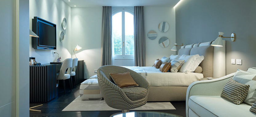 Suite Byron - двухуровневые сюиты с современными удобствами, оформленные в классическом стиле, вид на сад, отдельная гостиная, спальня, ванная комната, отделанная мрамором, балкон.