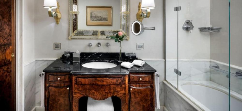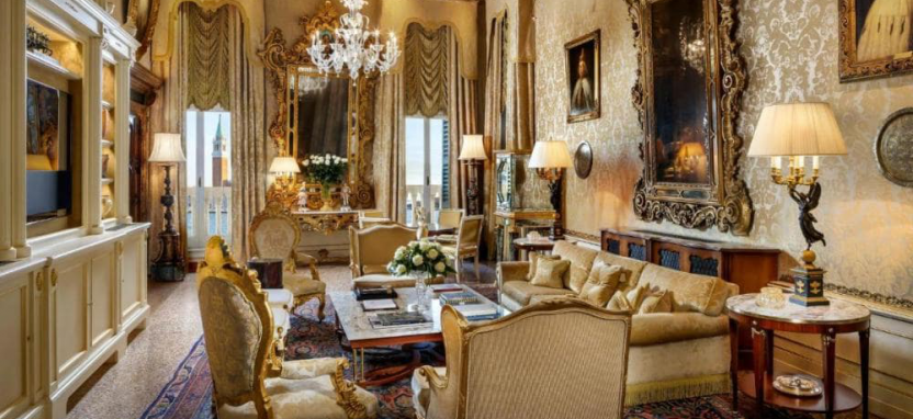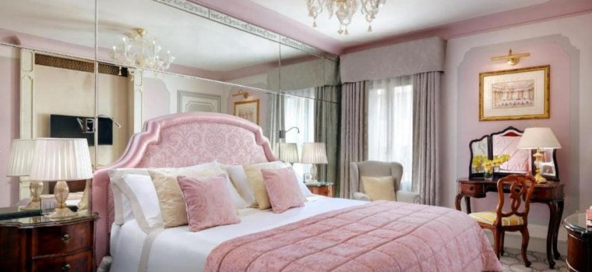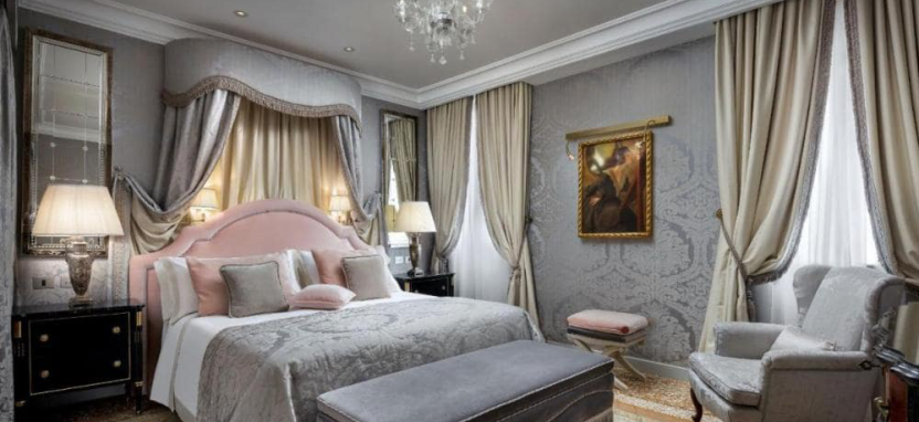 Signature Suites (65-73 кв. м) - 3 уникальных и роскошных угловых сюита в Palazzo Dandolo с высокими потолками, оригинальным паркетом, зеркалами из муранского стекла, антикварной мебелью и произведениями живописи, спроектированные французским дизайнером Пьером Рохоном, захватывающие виды на остров San Giorgio, Гранд канал и Punta della Dogana, отдельная просторная гостиная, обеденная зона, спальня с двуспальной кроватью, ванная комната с ванной и отдельной душевой кабиной, 2 балкона. Возможно объединение номеров.