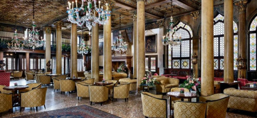 Dandolo Bar - роскошный бар среди мраморных колонн на 1 этаже Palazzo Dandolo с очаровательной атмосферой и живой фортепианной музыкой, предлагающий вечерние коктейли, классические напитки и легкие закуски.