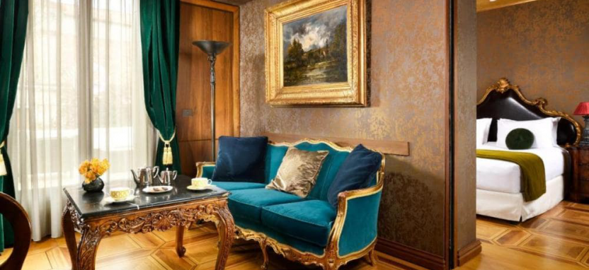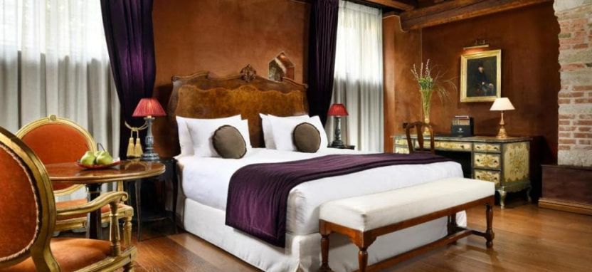 Deluxe Suite (40 кв. м) - просторные и изысканные сюиты с высокими потолками, раритетной мебелью и изящным декором. Романтический вид на крыши Венеции и частичный вид на Гранд канал, отдельная хорошо оснащенная гостиная, спальня с большой двуспальной кроватью, просторная ванная комната, отделанная мрамором, с ванной и отдельной душевой кабиной.