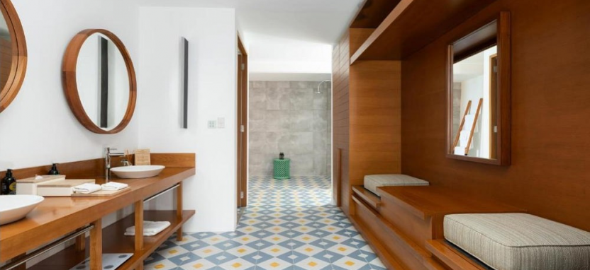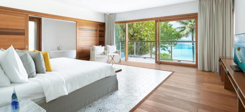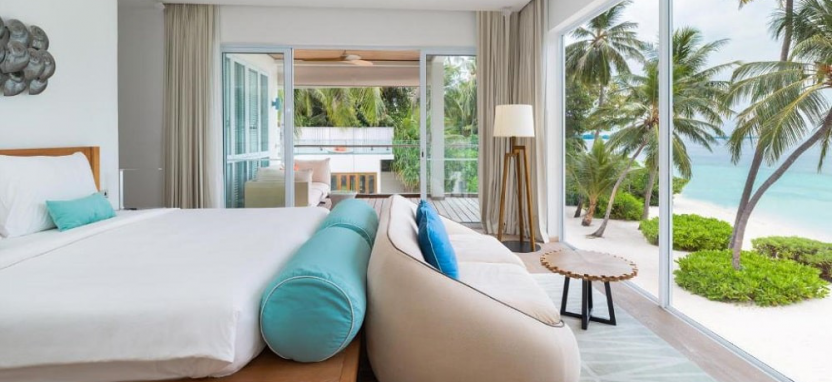 1-Bedroom Beach Pool Villa (470 кв. м – общая площадь, 220 кв. м – внутреннее пространство, 250 кв. м – открытое пространство) – пляжная вилла с одной спальней. Кровать king-size, диван-кровать, детская кроватка или раскладушка, зона отдыха, ванная комната с ванной и душем, 2 тропических душа на свежем воздухе, меблированная терраса с бассейном, шезлонгами, зоной отдыха, обеденной зоной, гамаком, выходом к пляжу и видом на океан. Размещение – 2 взрослых с ребенком.