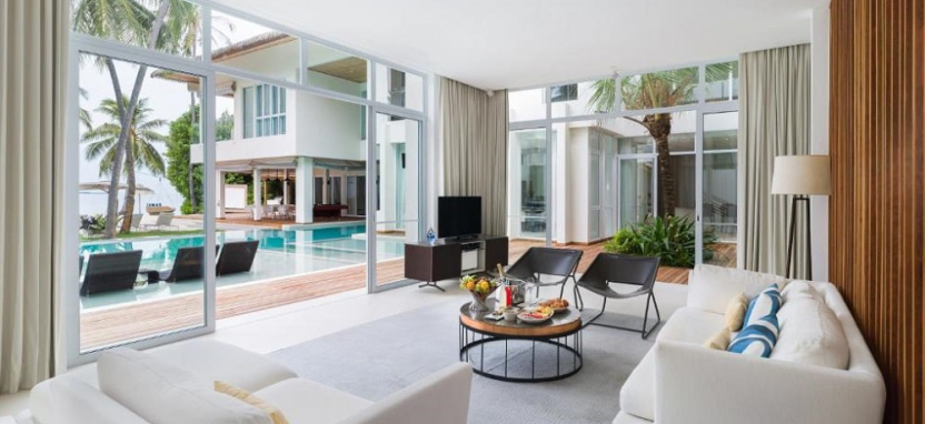 2-Bedroom Beach Pool Villa (530 кв. м – общая площадь, 235 кв. м – внутреннее пространство, 295 кв. м – открытое пространство) – пляжная вилла с двумя спальнями. Спальня с кроватью king-size, спальня с двумя односпальными кроватями и одной двухъярусной кроватью, диван-кровать, детская кроватка или раскладушка, 2 гостиные, 2 ванные комнаты с ванной и душем, 2 тропических душа на свежем воздухе, меблированная терраса с бассейном, шезлонгами, зоной отдыха, обеденным столом, гамаком, выходом к пляжу и видом на океан. Размещение – 4 взрослых с 4 детьми.