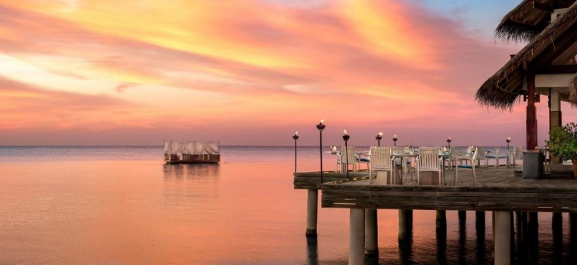 110 пляжных и водных вилл, 5 ресторанов и баров, спа-центр, тренажерный зал, павильон для занятий йогой и медитацией, детский клуб, салон красоты, парикмахерская, библиотека, школа серфинга, центр дайвинга PADI, центр водных видов спорта, помещения для деловых встреч и праздничных мероприятий, организация свадеб и праздничных торжеств, вечерний кинотеатр.