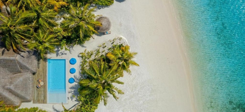 Sunrise Beach Pool Villa (150 кв. м) – пляжная вилла в саду с видом на восход солнца. Кровать king-size, зона отдыха, диван, письменный стол, ванная комната открытого плана с двумя раковинами, ванной и душем, тропический душ на свежем воздухе, терраса с бассейном, зоной отдыха, обеденной зоной, выходом к пляжу и видом на океан. Размещение – 3 взрослых с 1 ребенком.