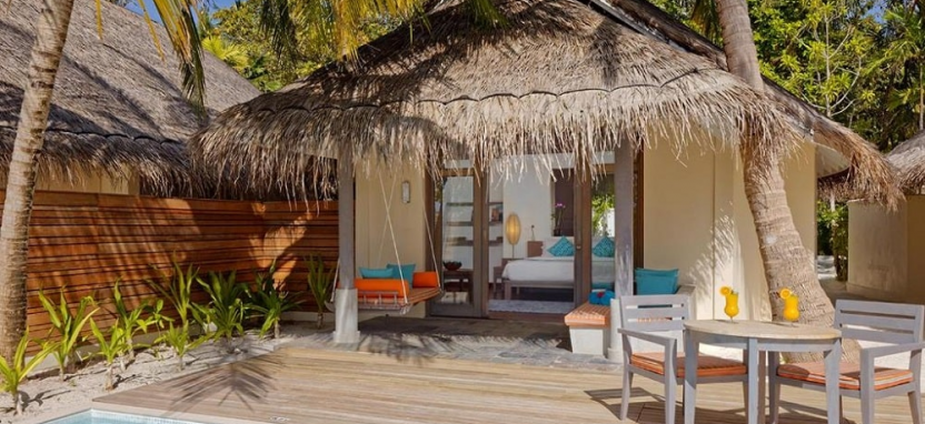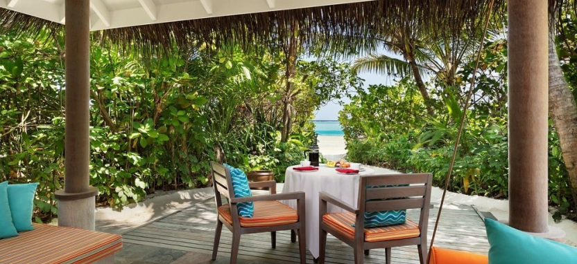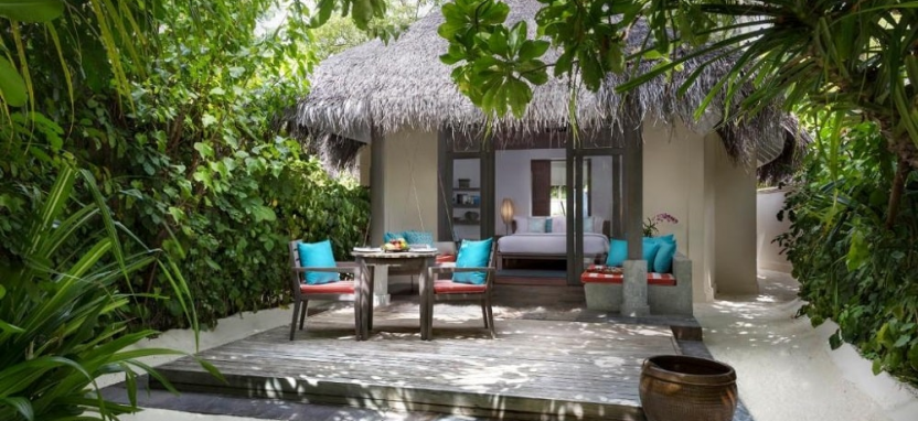 Sunrise Beach Villa (125 кв. м) – пляжная вилла в саду с видом на восход солнца. Кровать king-size, зона отдыха, диван, письменный стол, ванная комната открытого плана с двумя раковинами, ванной и душем, тропический душ на свежем воздухе, терраса с зоной отдыха, обеденной зоной, выходом к пляжу и видом на океан. Размещение – 3 взрослых с 1 ребенком.