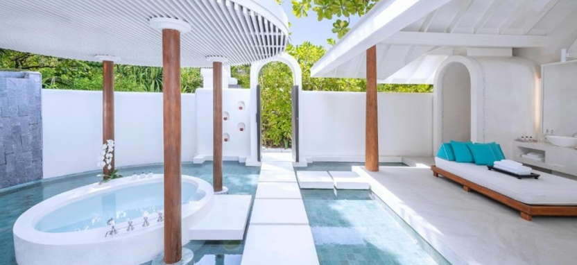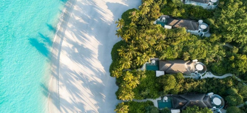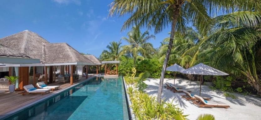 Three-Bedroom Beach Pool Residence (1330 кв. м) – пляжная резиденция с тремя спальнями. Две спальни с кроватями king-size, спальня с двумя односпальными кроватями, кушетка и письменный стол в каждой спальне, просторная гостиная с обеденной зоной, кухня, 3 ванные комнаты с двумя раковинами, крытым и открытым тропическим душем, в двух из них круглая ванна, комната для спа-процедур, тренажерный зал, меблированная терраса с бассейном, шезлонгами, зоной отдыха, подвесными качелями, обеденной зоной, выходом к пляжу и видом на сад. Размещение – 6 взрослых с 6 детьми.