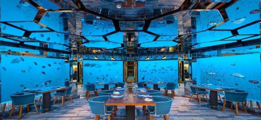 Sea – гастрономический ресторан, расположенный под водой, с панорамными окнами, через которые можно наблюдать за морскими обитателями. Открыт на обед и ужин.