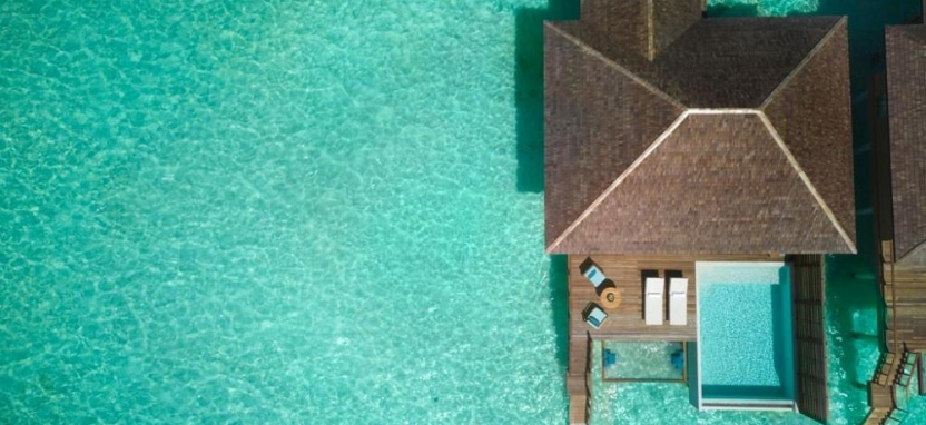 Deluxe Over Water Pool Villa (130 кв. м) – улучшенная водная вилла. Кровать king-size, зона отдыха с диваном, туалетная комната, ванная комната с двумя раковинами, ванной с панорамными окнами и душем, терраса с бассейном, надводным гамаком, зоной отдыха, шезлонгами, спуском в воду и видом на океан. Размещение – 3 человека.