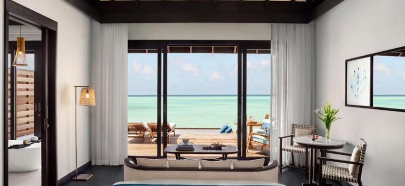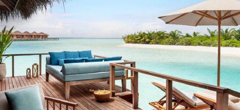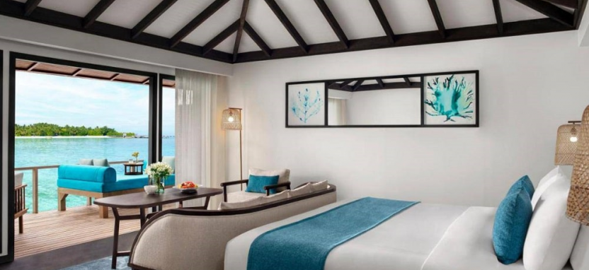 Over Water Villa (66 кв. м) – водная вилла. Кровать king-size, зона отдыха с диваном, ванная комната с двумя раковинами и душем, терраса с зоной отдыха, кушеткой, спуском в воду и видом на океан. Размещение – 3 человека.