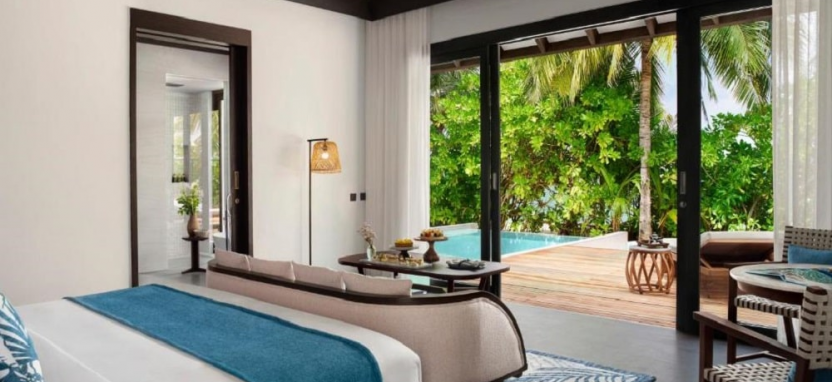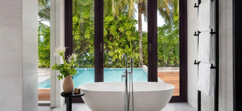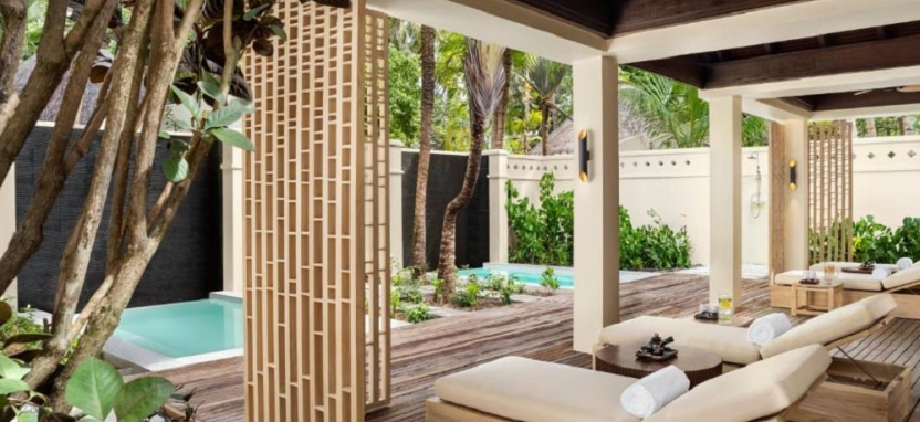 Beach Pool Villa (145 кв. м) – пляжная вилла в саду. Кровать king-size, зона отдыха с диваном, ванная комната с двумя раковинами, ванной и душем, тропический душ на свежем воздухе, терраса с бассейном, шезлонгами, обеденной зоной, выходом к пляжу и видом на океан. Размещение – 2 человека.