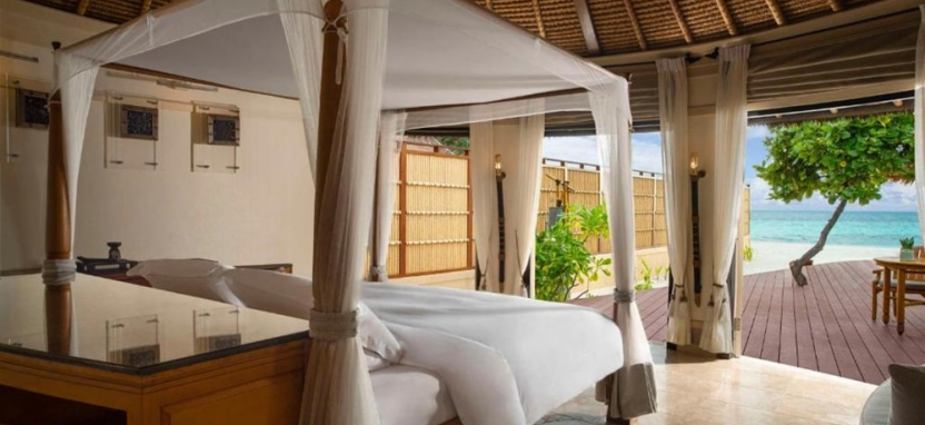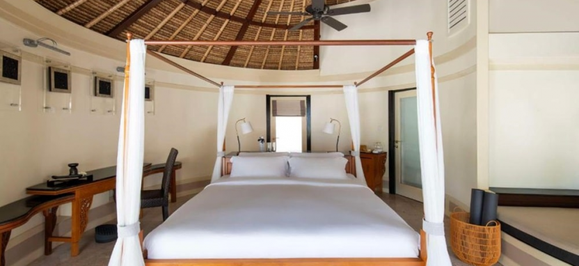Beachfront Pool Villa (110 кв. м) – пляжная вилла на берегу. Кровать king-size с балдахином, кушетка, ванная комната с двойной раковиной, круглой ванной и душевой кабиной, задний двор с бассейном, джакузи, кушеткой и тропическим душем, терраса с шезлонгами, зоной отдыха, обеденным столом, выходом к пляжу и видом на океан. Размещение – до 3 человек.
