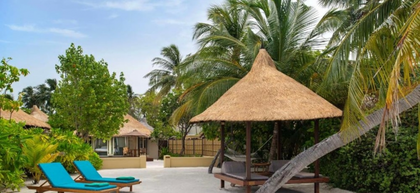 Ocean View Pool Villa (110 кв. м) – пляжная вилла в саду. Кровать king-size с балдахином, кушетка, ванная комната с двойной раковиной, круглой ванной и душевой кабиной, задний двор с бассейном, джакузи, кушеткой и тропическим душем, терраса с шезлонгами, зоной отдыха, обеденным столом, выходом к пляжу, видом на сад и океан. Размещение – до 3 человек.