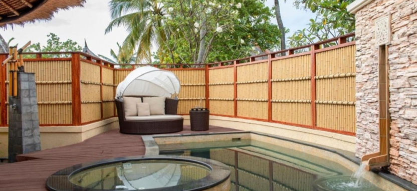 Удобства для всех гостей: отдельный вход, частный бассейн, меню подушек, кондиционер, потолочный вентилятор, шкаф или гардеробная, высокоскоростной интернет, телевизор с плоским экраном, телефон, сейф, мини-бар, принадлежности для приготовления чая и кофе, халаты, полотенца, тапочки, фен, туалетные принадлежности. Все виллы отеля расположены на берегу.