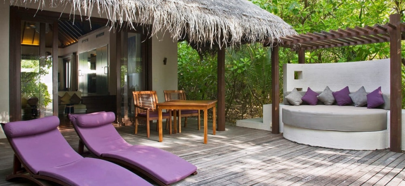 Island Villa (188 кв. м) – пляжная вилла в саду. Спальня с кроватью king-size, гостиная, ванная комната с двойной раковиной, круглой ванной и душевой кабиной, задний двор с бассейном, кушеткой и тропическим душем, терраса с шезлонгами, зоной отдыха, обеденной зоной, выходом к пляжу, видом на сад и океан. 44 виллы данной категории.