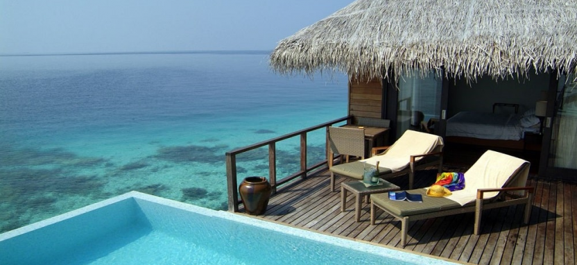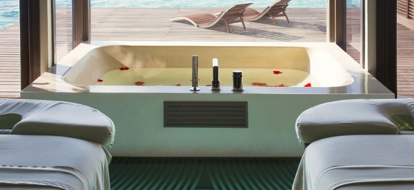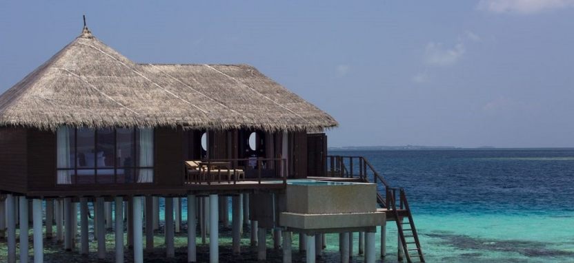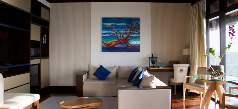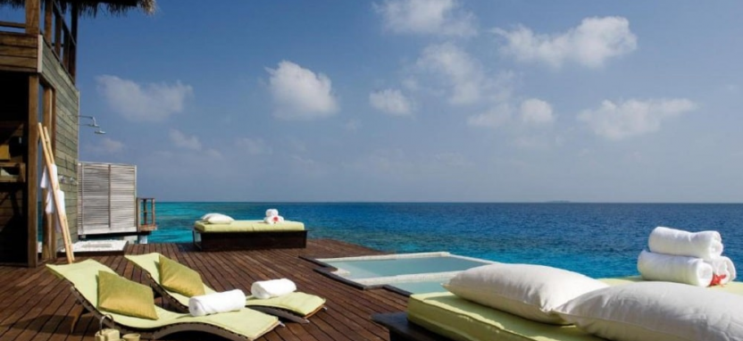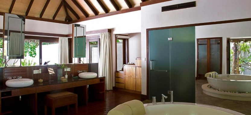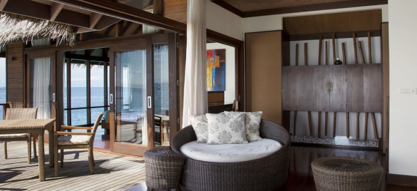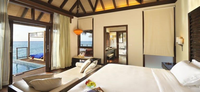 Water Villa (109 кв. м) – водная вилла на сваях. Кровать king-size, ванная комната с двумя раковинами, глубокой ванной и душевой кабиной, тропический душ на свежем воздухе, терраса с бассейном, шезлонгами, кушеткой, обеденной зоной, спуском в воду и видом на океан. Всего 16 вилл данной категории.