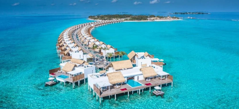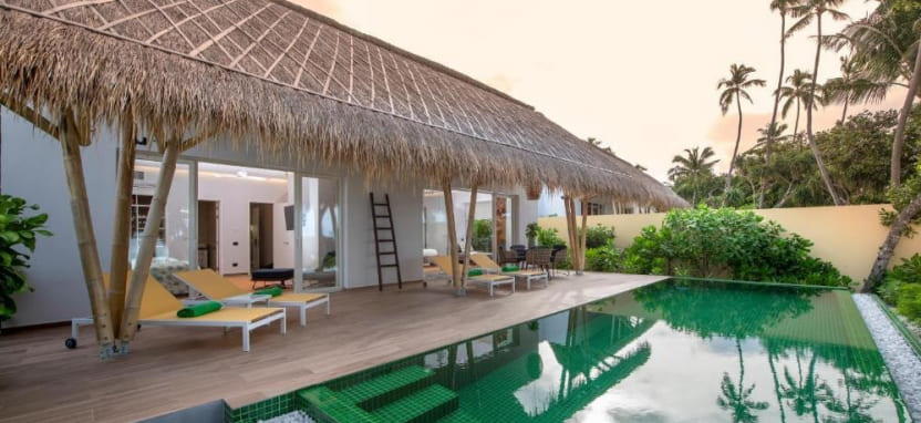 В отеле 120 вилл различных категорий, включая 60 пляжных и 60 водных вилл. Просторные комфортабельные виллы, расположенные на белоснежном пляже и над бирюзовыми водами лагуны, сочетают современный дизайн и мальдивские мотивы, а с террас открывается великолепный вид на тропические заросли и Индийский океан.