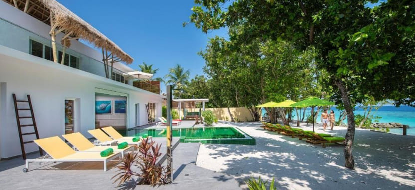 Family Beach Villa with Pool (280 кв. м) – просторная пляжная вилла в саду. Спальня с кроватью king-size и спальня с двумя односпальными кроватями, зона отдыха, рабочая зона, ванная комната с ванной и душем на открытом воздухе, меблированная терраса с бассейном 8 м х 3 м, обеденной зоной, выходом на пляж и видом на океан. Размещение – до 4 человек.