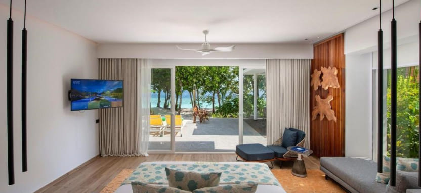 Beach Villa Sea View (176 кв. м) – пляжная вилла в саду. Спальня с кроватью king-size, зона отдыха, рабочая зона, просторная ванная комната с ванной и душем на открытом воздухе, меблированная терраса с выходом на пляж и видом на океан. Размещение – до 4 человек.