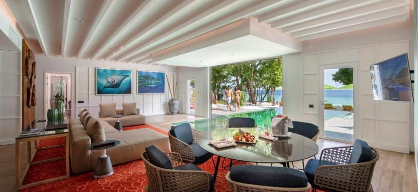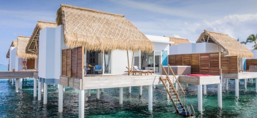 Presidential Water Villa (640 кв. м) – президентская водная вилла. Две спальни с кроватью king-size, зоной отдыха и рабочей зоной, отдельная гостиная с обеденной зоной, 2 ванные комнаты с гидромассажной ванной и душем, большая меблированная терраса с бассейном 10 м х 4 м, зоной отдыха, обеденной зоной, спуском в воду и видом на океан. Размещение – до 4 человек.