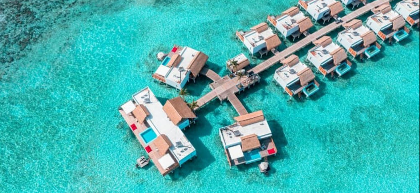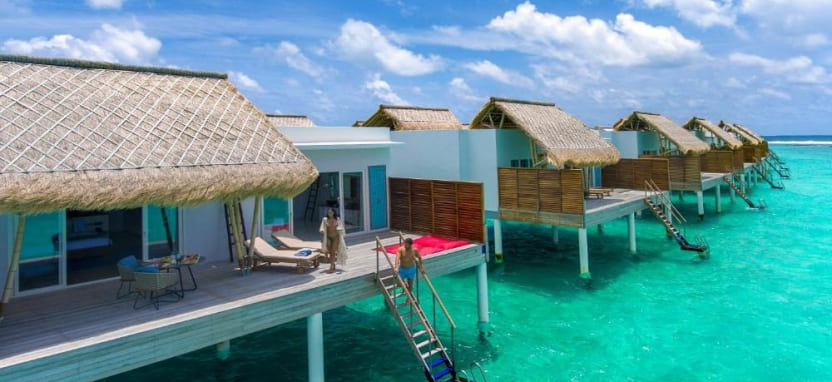 Просторные водные и пляжные виллы обустроены по последнему слову техники, у некоторых из них есть приватные бассейны или джакузи.