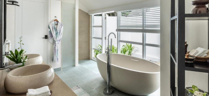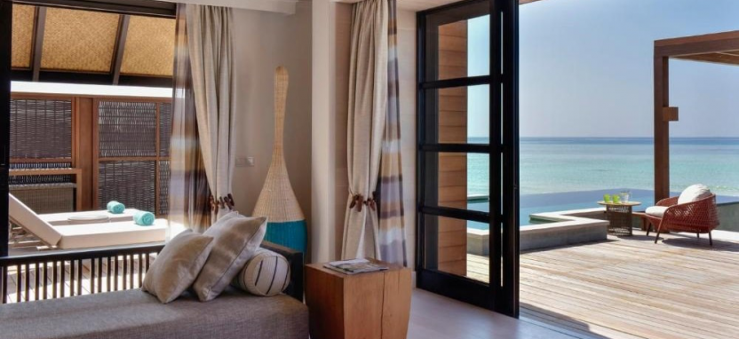Sunrise Beach Villa with Pool (63 кв. м) – пляжная вилла с видом на восход солнца. Кровать king-size или 2 односпальные кровати, кушетка, детская кроватка, зона отдыха, ванная комната с двойной раковиной, ванной и душем, тропический душ на свежем воздухе, меблированная терраса с бассейном, зоной отдыха, выходом к пляжу и видом на океан. Размещение – 3 взрослых или 2 взрослых с 2 детьми.