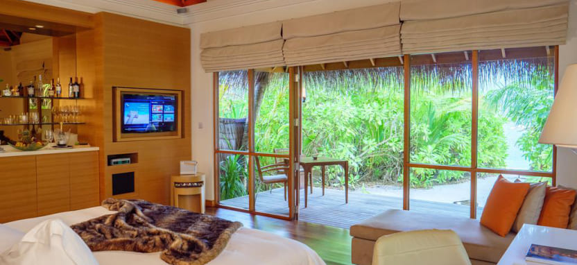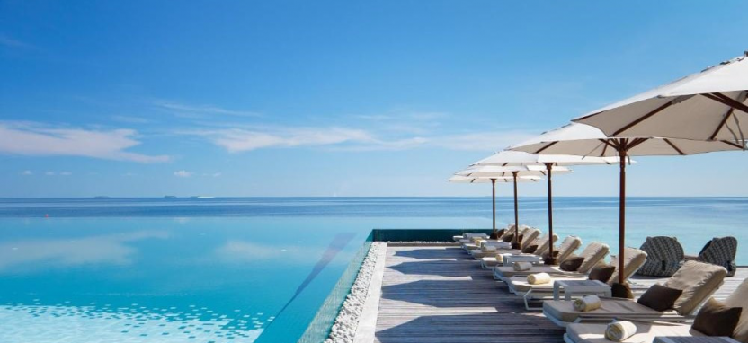 Ocean Bungalow with Pool (160 кв. м) – водное бунгало с видом на закат. Спальня с кроватью king-size, кушетка, отдельная гостиная, ванная комната с ванной и тропическим душем, меблированная терраса с бассейном, обеденным столом, спуском в воду и видом на океан. Размещение – до 3 человек.