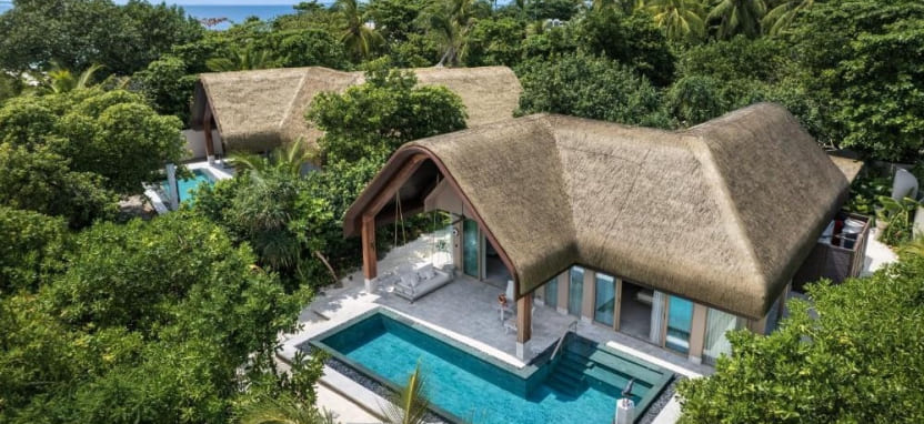 Four-Bedroom Beach Residence with Pool (500 кв. м) – двухэтажная пляжная резиденция в тропическом саду. Четыре спальни с кроватями king-size и односпальными кроватями, просторная гостиная, обеденная зона, библиотека, отдельная СПА-комната, ванная комната в стиле СПА с ванной на открытом воздухе, терраса с бассейном, зоной отдыха, тропическим душем, выходом на пляж и видом на океан. Размещение – 9 взрослых или 8 взрослых с 3 детьми.