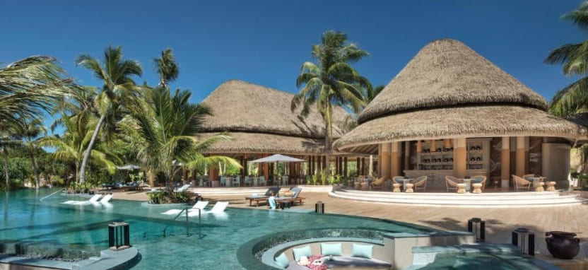 Luxury Water Villa with Pool (108 кв. м) – водная вилла. Спальня с кроватью king-size, гостиная зона, библиотека, ванная комната в стиле СПА, терраса с бассейном, зоной отдыха, тропическим душем, спуском в воду и видом на океан. Размещение – 3 взрослых или 2 взрослых с 2 детьми.