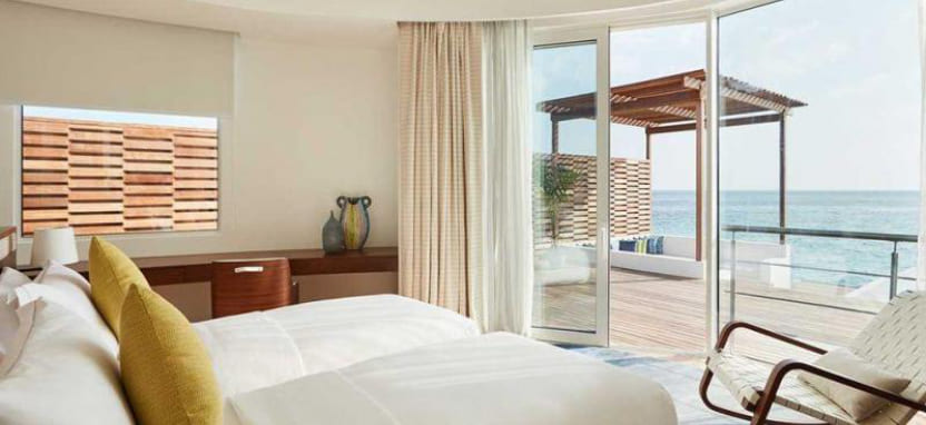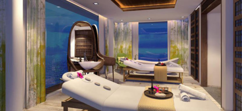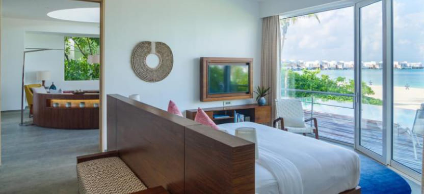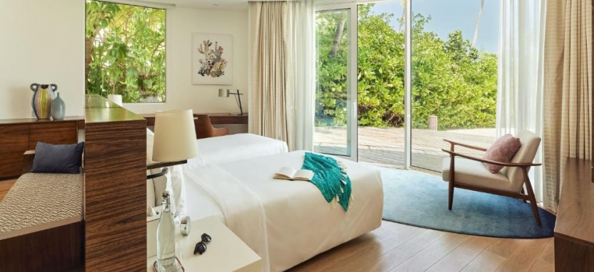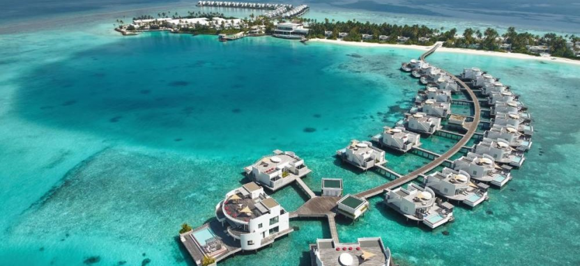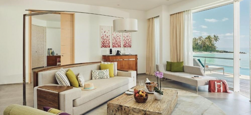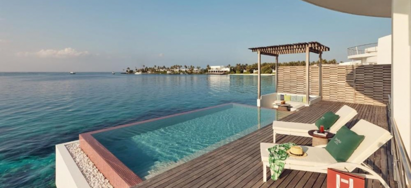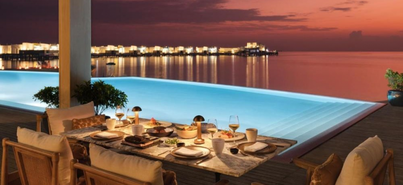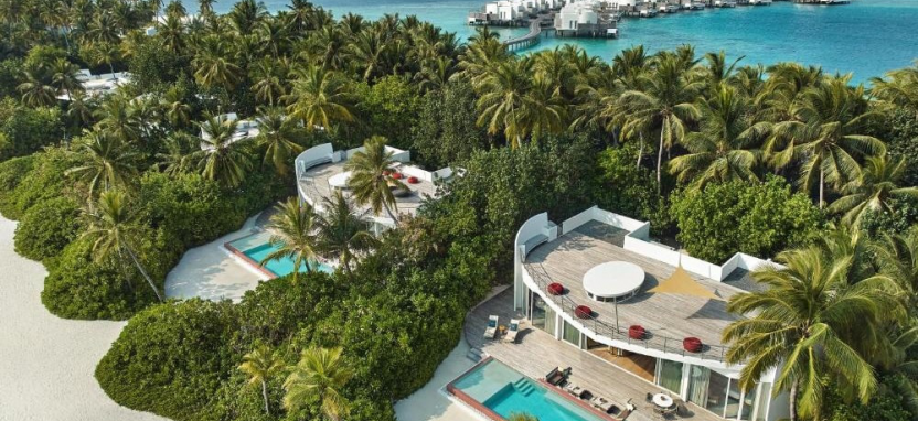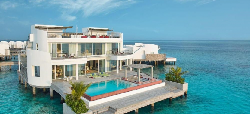 Ocean Villa with Pool (351 кв. м) – водная вилла. Спальня с кроватью king-size, отдельная гостиная с обеденной зоной, ванная комната с ванной и тропическим душем на открытом воздухе, меблированная терраса с бассейном, спуском в воду и видом на океан, отдельная терраса на крыше с зоной отдыха. Размещение – 3 взрослых или 2 взрослых с 2 детьми.
