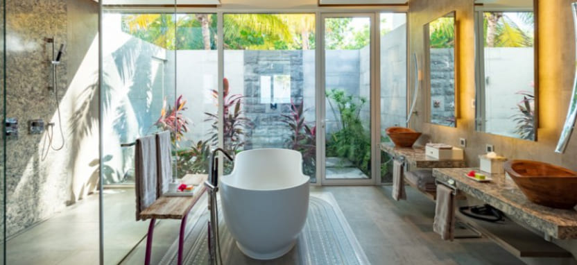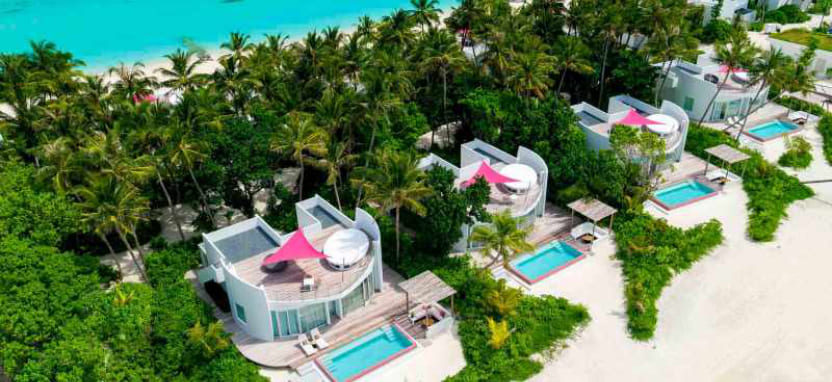 Beach Villa with Pool (351 кв. м) – пляжная вилла в тропическом саду. Спальня с кроватью king-size, отдельная гостиная, ванная комната с ванной и тропическим душем на открытом воздухе, меблированная терраса с бассейном, выходом к пляжу и видом на океан, отдельная терраса на крыше с зоной отдыха. Размещение – 3 взрослых или 2 взрослых с 2 детьми.