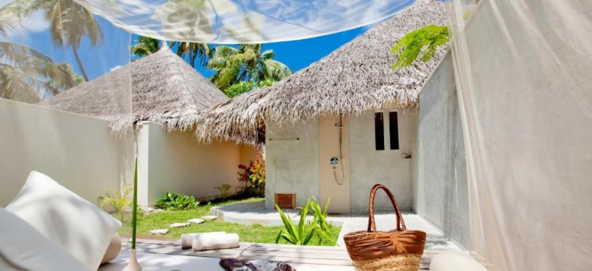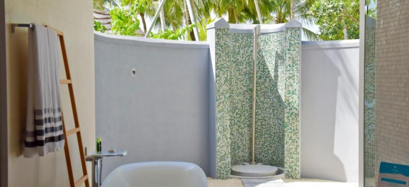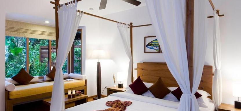 Beach Villa (70 кв. м) – пляжная вилла в тропическом саду. Кровать king-size с балдахином, зона отдыха, гардеробная, ванная комната с душем на открытом воздухе, терраса с шезлонгами, выходом к пляжу и видом на океан. Размещение – 3 взрослых или 2 взрослых с ребенком.