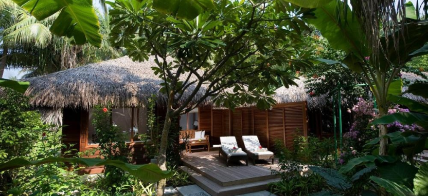 Deluxe Beach Villa (95 кв. м) – пляжная вилла в тропическом саду. Кровать king-size с балдахином, зона отдыха, гардеробная, ванная комната с ванной, терраса с джакузи, тропическим душем, шезлонгами, зоной отдыха, выходом к пляжу и видом на океан. Размещение – 3 взрослых или 2 взрослых с ребенком.