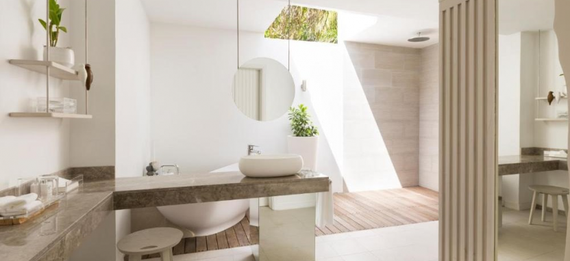 Beach Villa (95 кв. м) – пляжная вилла в саду. Кровать king-size, зона отдыха, письменный стол, ванная комната с душем, большая ванна под открытым небом, меблированная терраса с зоной отдыха, выходом на пляж и видом на океан. Размещение – 3 взрослых или 2 взрослых с 2 детьми.