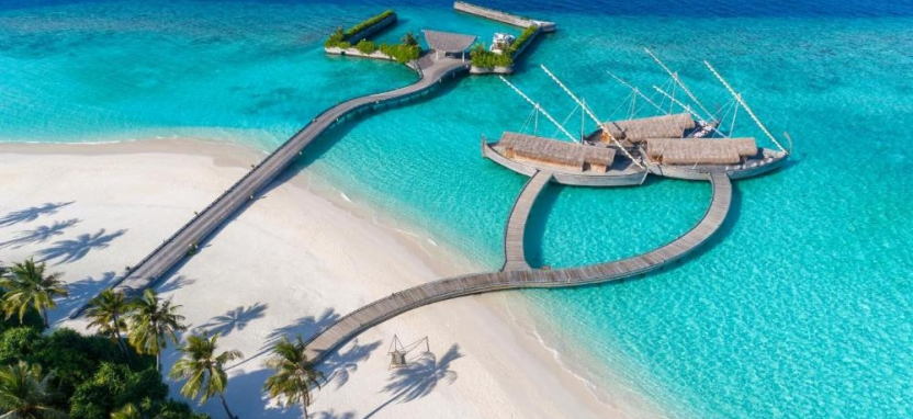 Открытый пейзажный бассейн, 50 водных и пляжных вилл и резиденций, 6 ресторанов и баров, спа-центр, павильон для занятий йогой и медитацией, фитнес-центр, центр дайвинга и водных видов спорта PADI, экскурсионное бюро, организация свадеб и праздничных торжеств.
