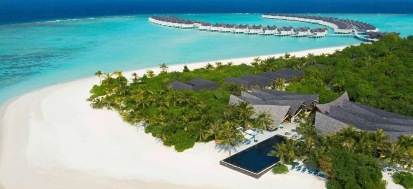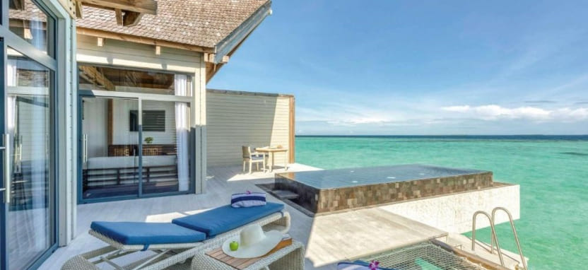 Overwater Pool Villa Lagoon (140 кв. м) – водная вилла. Спальня с кроватью king-size или двумя односпальными кроватями, гардеробная, зона отдыха, винный погреб, ванная комната с ванной и душем на открытом воздухе, меблированная терраса с бассейном, спуском в воду и видом на океан. Размещение – 2 взрослых с ребенком до 2-х лет.